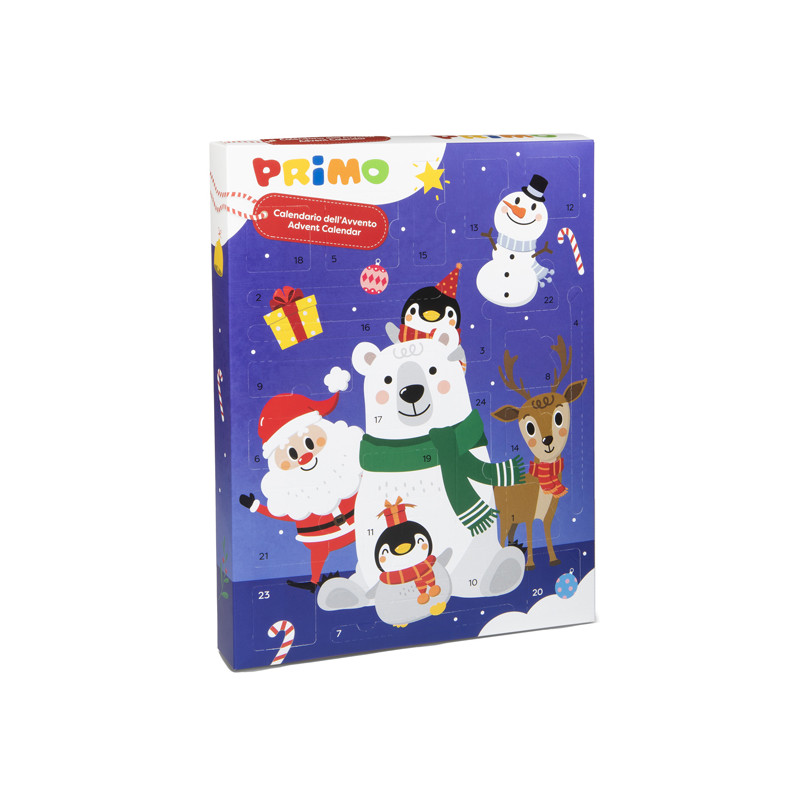 Календарот содржи широк избор на различни материјали: четири Ditacolor боички за прсти (50 g), четири Easydò моделирачки глини (60 g), три алатки за моделирање, една четка за сликање, една готова темпера боја (50 ml), четири восочни триаголни боички, три фини бои (12 ml) и четири фломастери.