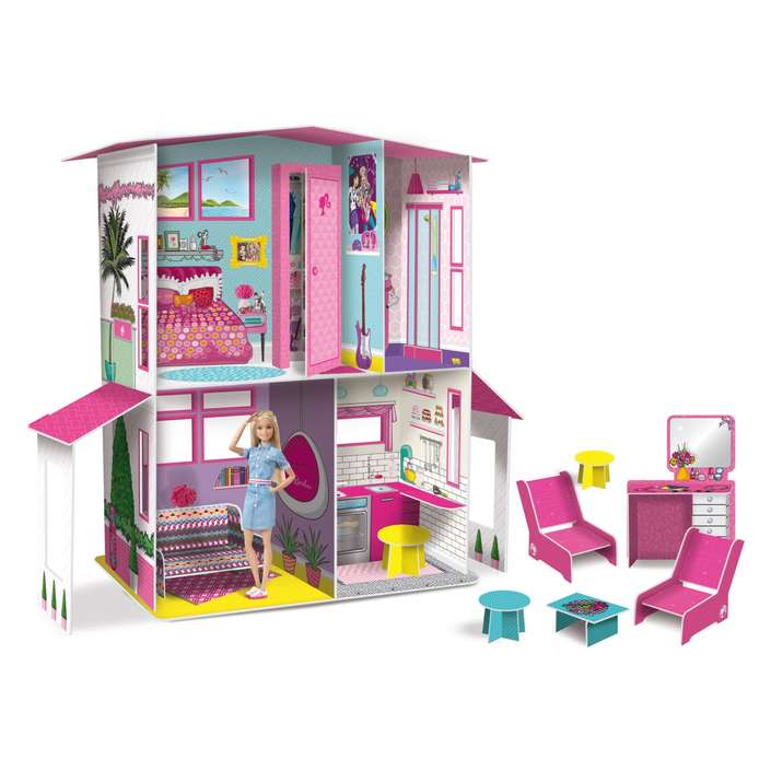Двокатна вила од соништата со голема градина, мебел, веранда и многу простор за персонализација: тука е фантастичната куќа од соништата на Барби, вистинска вила за изградба и играње заедно со Барби и нејзините пријатели.