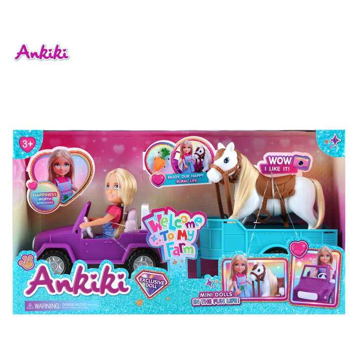 Анкики го обожава својот коњ и секогаш е подготвена за нови авантури. Со розовиот џип и приколката, лесно може да го поведе својот миленик на прошетка или патување.