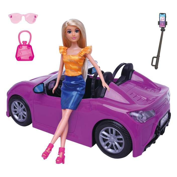 Куклата доаѓа со практични додатоци за незаборавно искуство – мала чанта, очила за сонце и селфи-стик, идеални за сите нејзини фотогенични моменти.