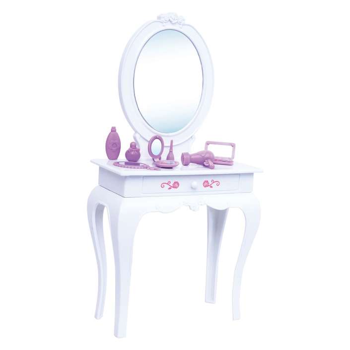 Помогни и на Anlily да се подготви за совршен изглед! Овој прекрасен сет содржи тоалетна масичка со огледало и столче, како и различни модни и козметички додатоци за уште повеќе забавна игра и стилизирање.