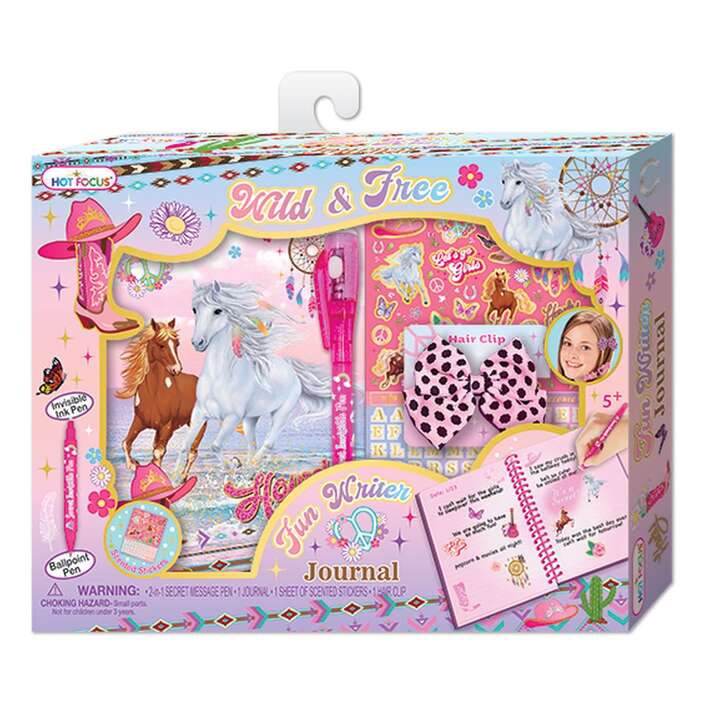 Запишете ги сите ваши мисли во овој прекрасен Wild & Free дневник исполнет со коњчиња, боемски детали и магија! Со специјалното пенкало можете да пишувате како со обично мастило, така и со невидливо мастило кое се открива само со светлото на пенкалото – совршено за чување тајни што никој друг не може да ги прочита.