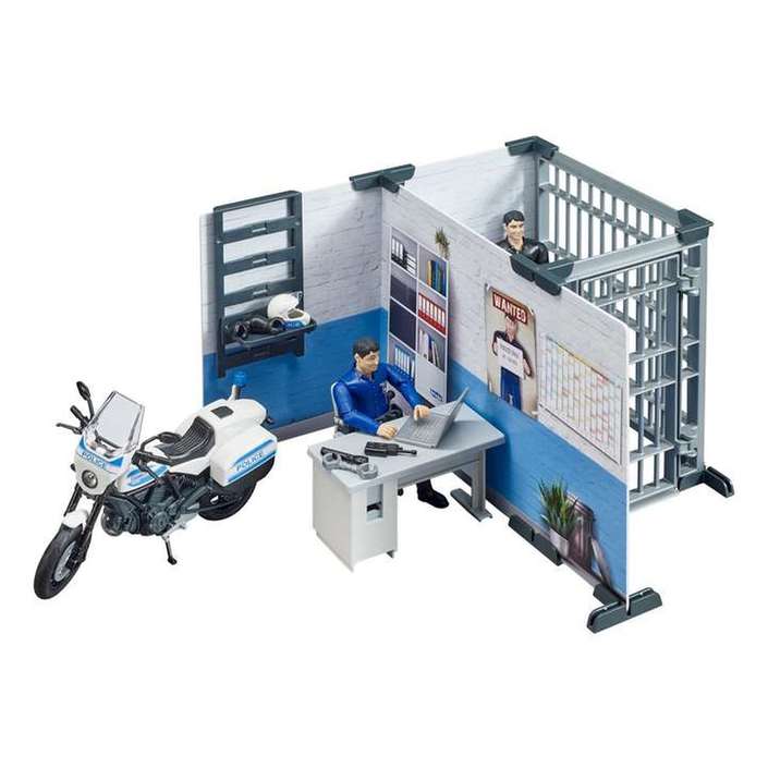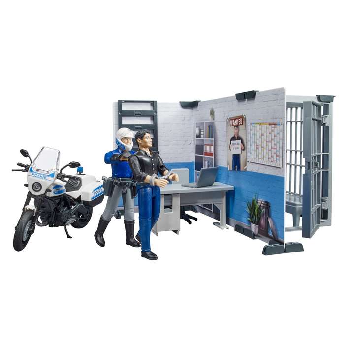 Сетот вклучува двострани печатени ѕидни елементи со прилагодливи ногарки, кои создаваат автентичен изглед на канцеларија и затворска ќелија. Може лесно да се комбинира со други Bruder сетови за да се прошири играта.