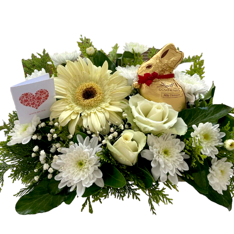 Во цветниот аранжман бесплатно ја додаваме и вашата лична порака, која е потребно да ни ја испратите заедно со порачката, пополнувајќи го делот „Забелешка од клиентот“.