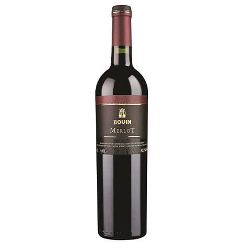 Сортата Мерло на винарија Бовин е суво, црвено вино со моќна, интензивна, пурпурна боја која нијансира од ова младо вино со длабок карактер.