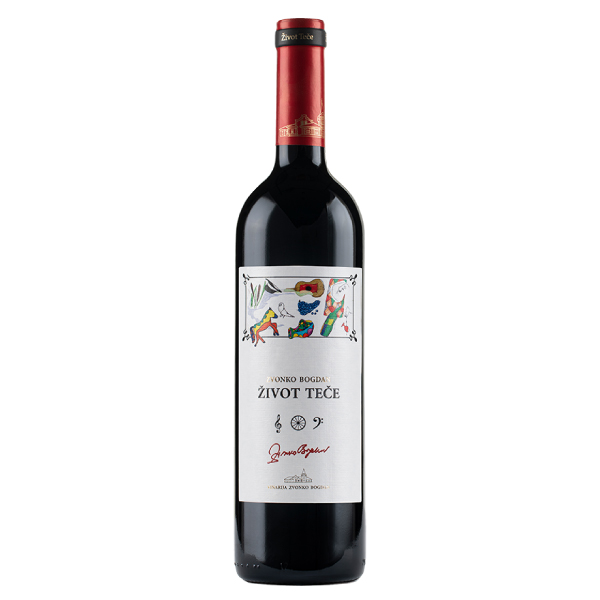 „Животот тече“ е суво црвено вино кое се одлежува 12 месеци во барик буриња од француски и американски даб. Се служи во класична чаша за црвено вино, на температура од 8 до 10 степени и идеално се комбинира со рижото со шумски печурки, полномасни меки сирења и папракаш.